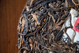 GENUINE PRODUCT and exclusively ordered Pu-erh tea cake in very limited quantity. This round tea is made of hand-picked early spring Ban Zhang Ancient tree tea leaves of 1,800m altitude. Handcrafted and pressed with traditional stone weights. The young golden-yellow tea buds flow gracefully on the surface and release a subtle floral fragrance, and with the thick, strong leaves that provide the rich, bold taste tuck below the surfaces. It is a treasure for serious tasting or collecting.